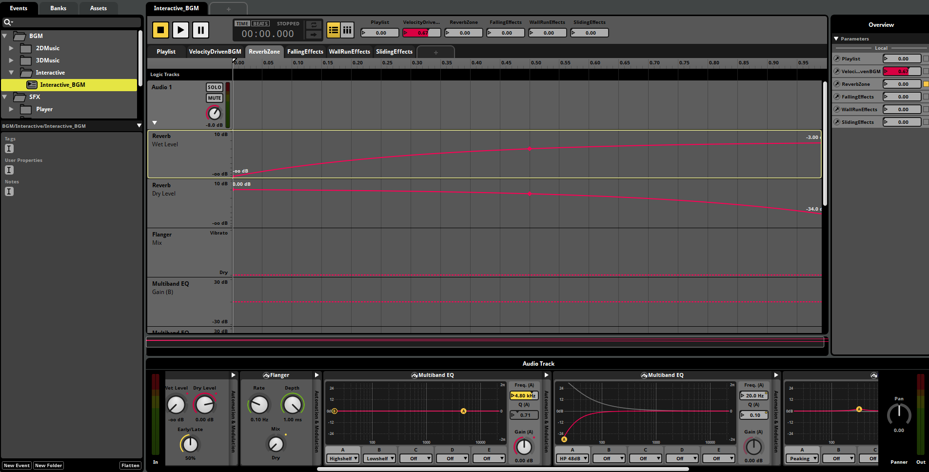 Dynamic Background Music in a test fps game, with some reverb zones and parkour mechanics.